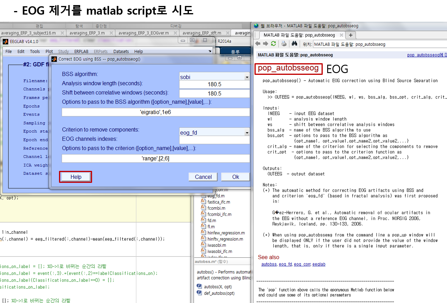 카테고리 없음 matlab 스크립트로 EOG제거 by SnowRed 2020. 1. 29. 반응형 위 구문은 임의로 만든거니까 세부적인 내용은 각자의 상황에 맞게 잘 조정하면 됨. help버튼 잘 보는 습관을 들이자..... help확인한다는 생각을 못해서 한참 해맴 공유하기 게시글 관리 <Hello 8-World!> 댓글