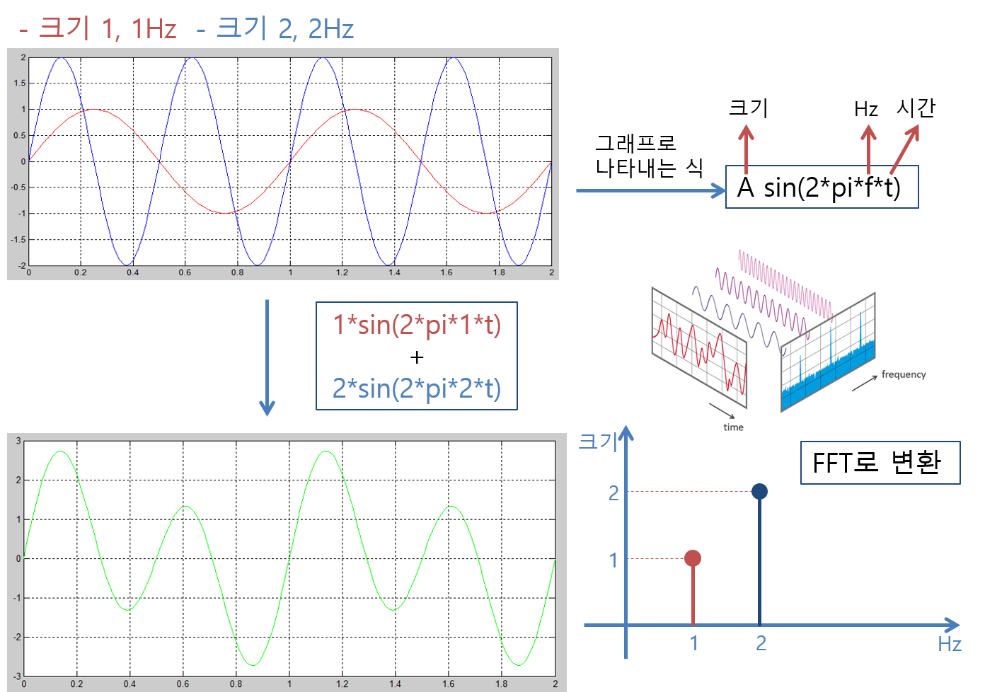 FFT는 이러한 주파수를 이용해 표현할 수 있다. A sin(s*pi*f*t)는 필자는 실제로 써 본적이 없다.