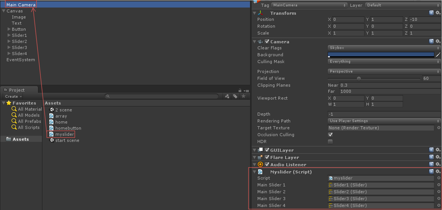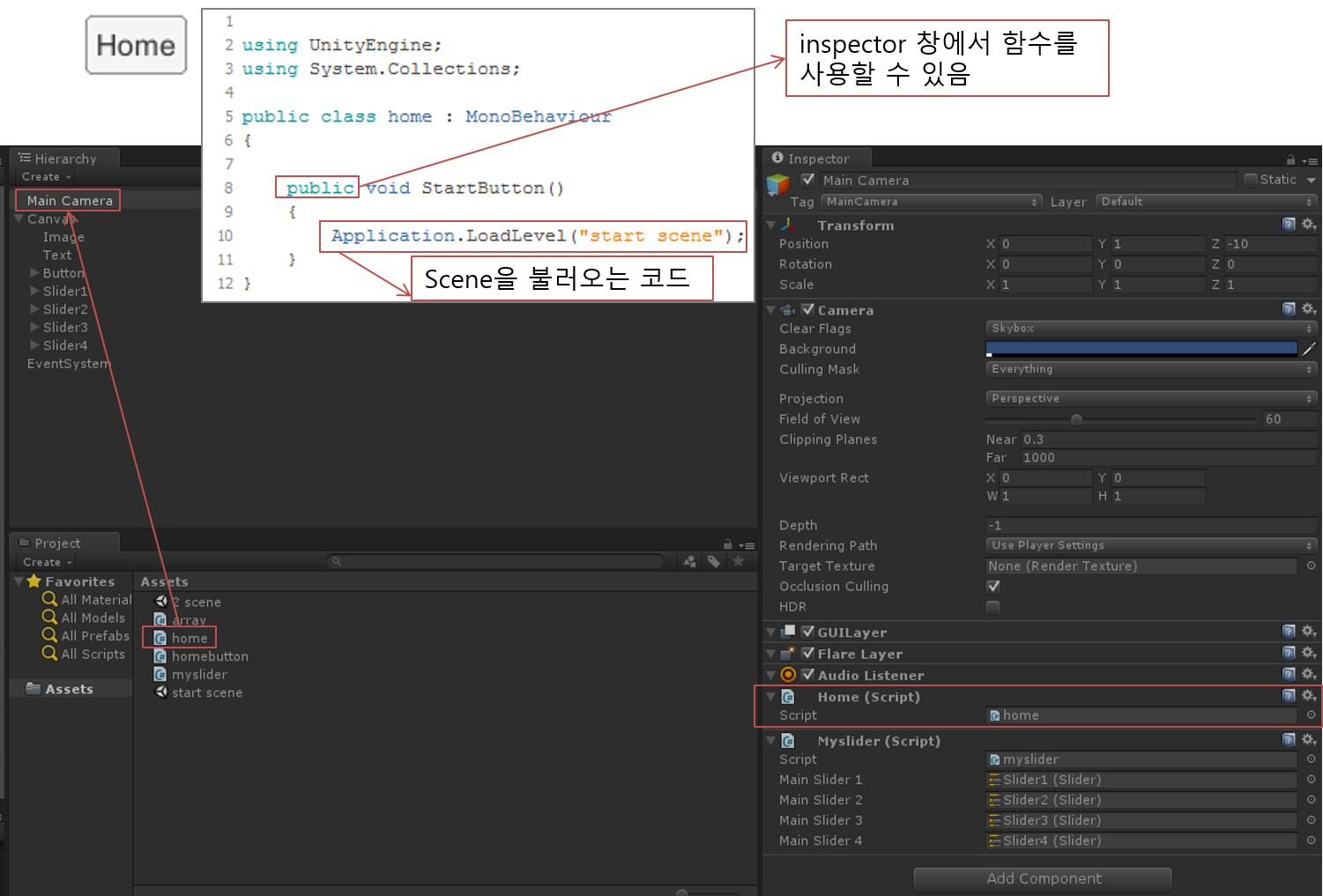 에셋의 스크립트를 main camera에 넣는거 잊지마세요. 이부분은 unity가 익숙해져도 자꾸 까먹게 됩니다.