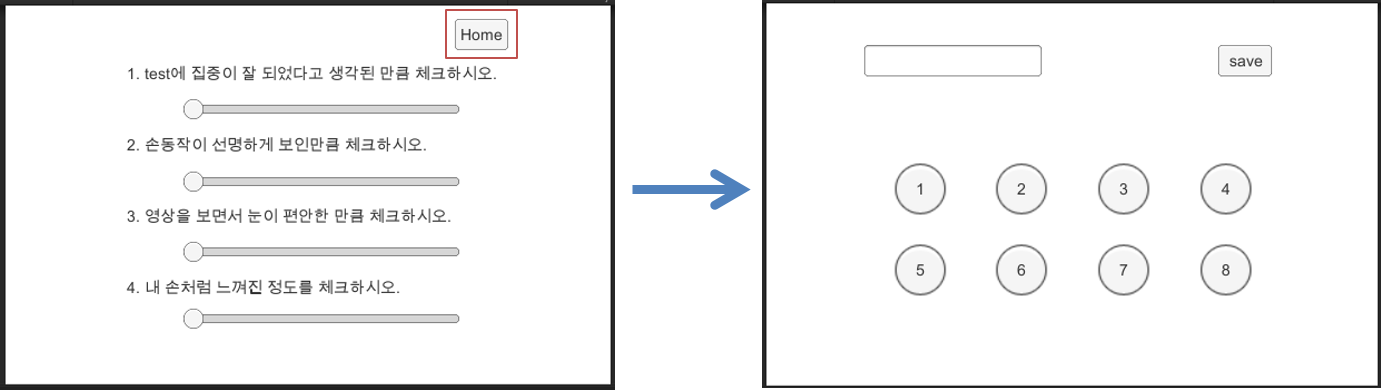 8개의 버튼은 누르게 되면 해당 설문지 화면으로 넘어가게 됩니다.