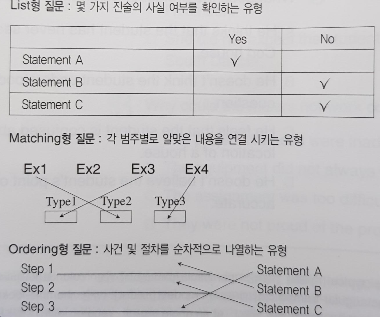 : List, Matching, Ordering 형태는 0~1문제씩 출제