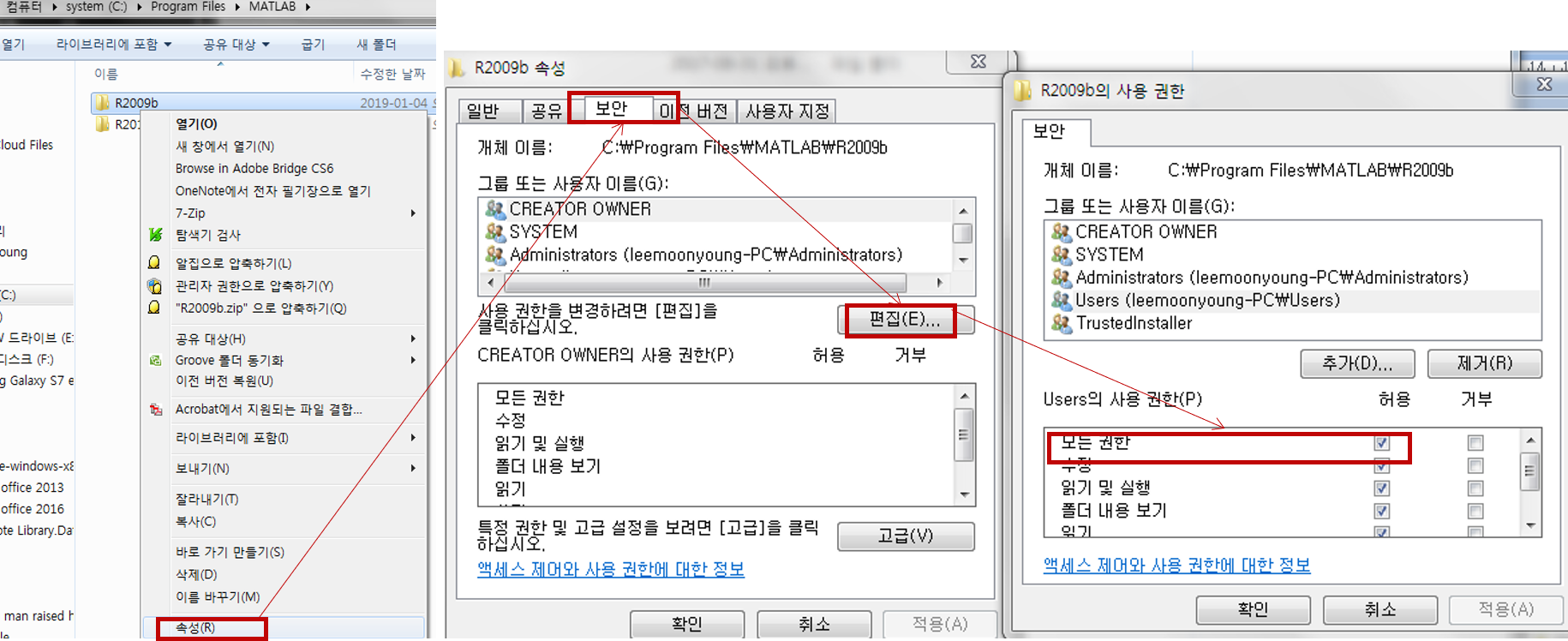 +) 윈도우 7에서 읽기전용이 해제가 되지 않는다면